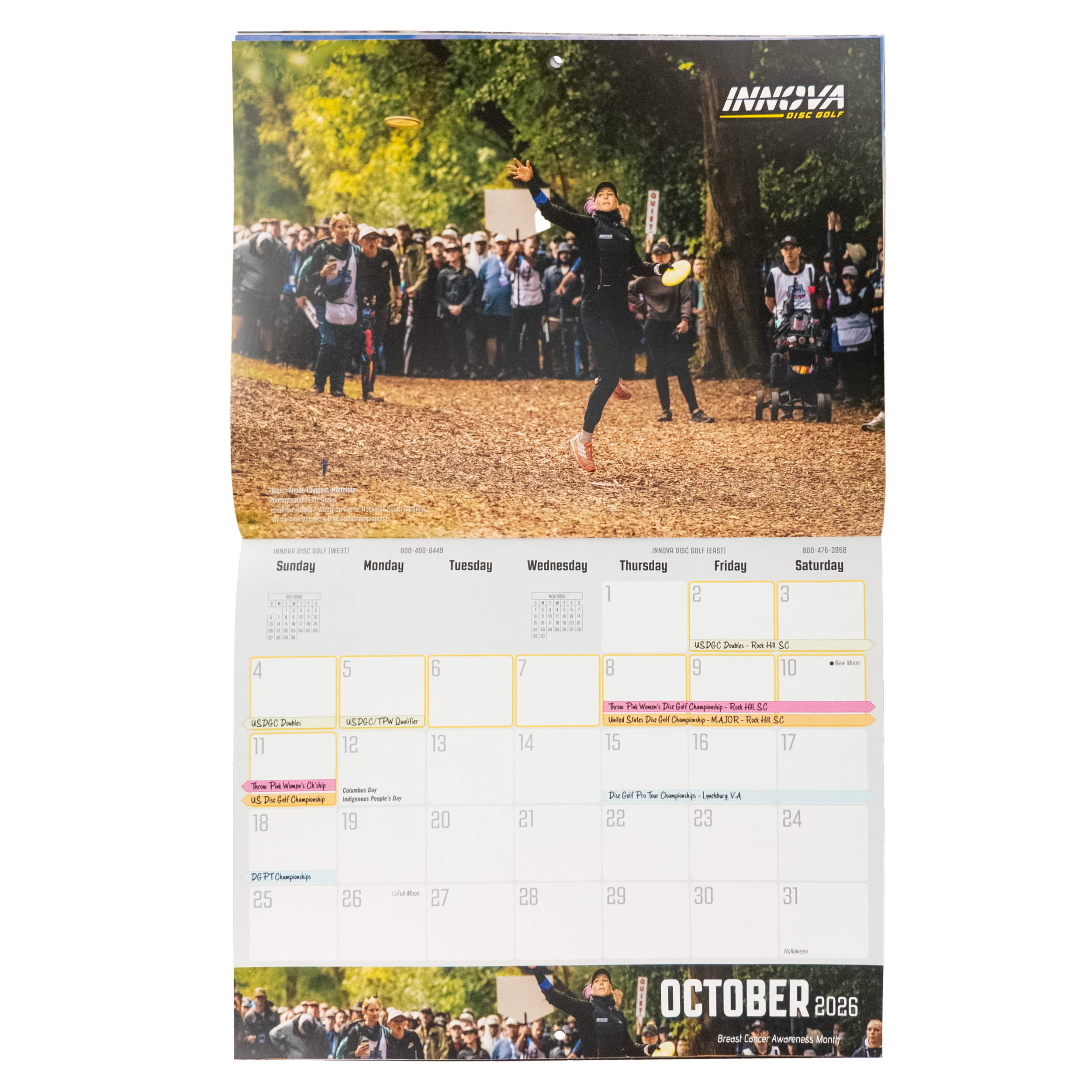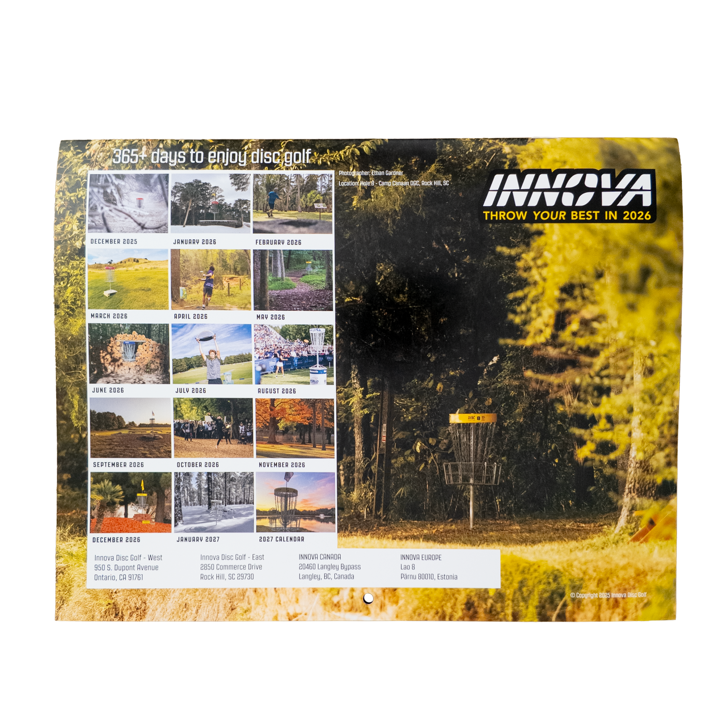 The 2026 Innova Calendar features twelve months of course photography along with key disc golf dates. An easy holiday add-on that customers love to pick up at the counter as they check out with their other new gear.